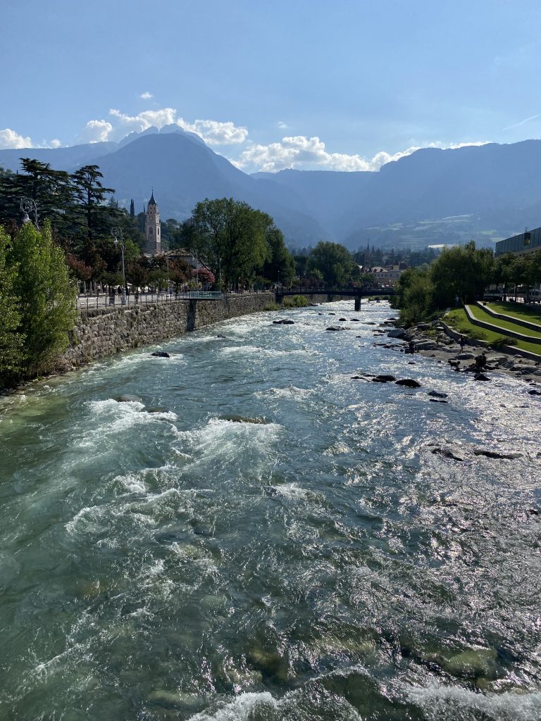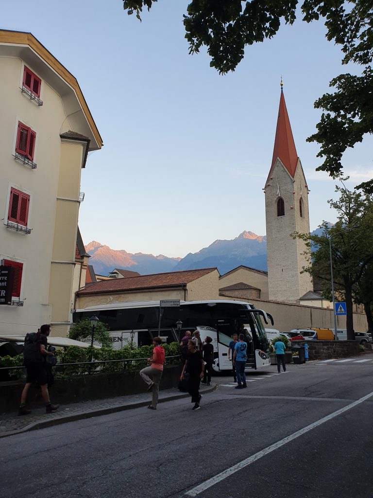 Vom Tisenhof sind wir nur noch ein kurzes Stück bis zu einer Bushaltestelle gelaufen, wo auch der Bus schon wartete, der uns nach Meran fuhr. In Meran nahmen wir unserer Gepäck entgegen, welches wir zu Begin im Oase-AlpinCenter für Meran abgeben konnten und bezogen unsere Hotelzimmer. Nach einer ausgiebigen Dusche und mit frischen Klamotten haben wir das Abendessen genossen. Anschließend bekamen wir im Garten des Hotels noch Urkunden überreicht und haben noch mehrmals auf eine sehr schöne Woche angestoßen.